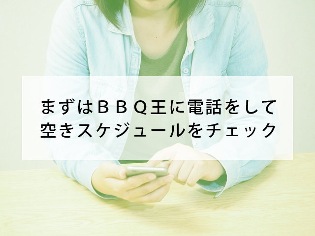 バーベキューを開催する予定が決まったら、まずはBBQ王へ空きスケジュールの確認連絡をお願いします。