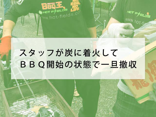 バーベキュー終了時に合わせてBBQ王が回収と後片付けを行います